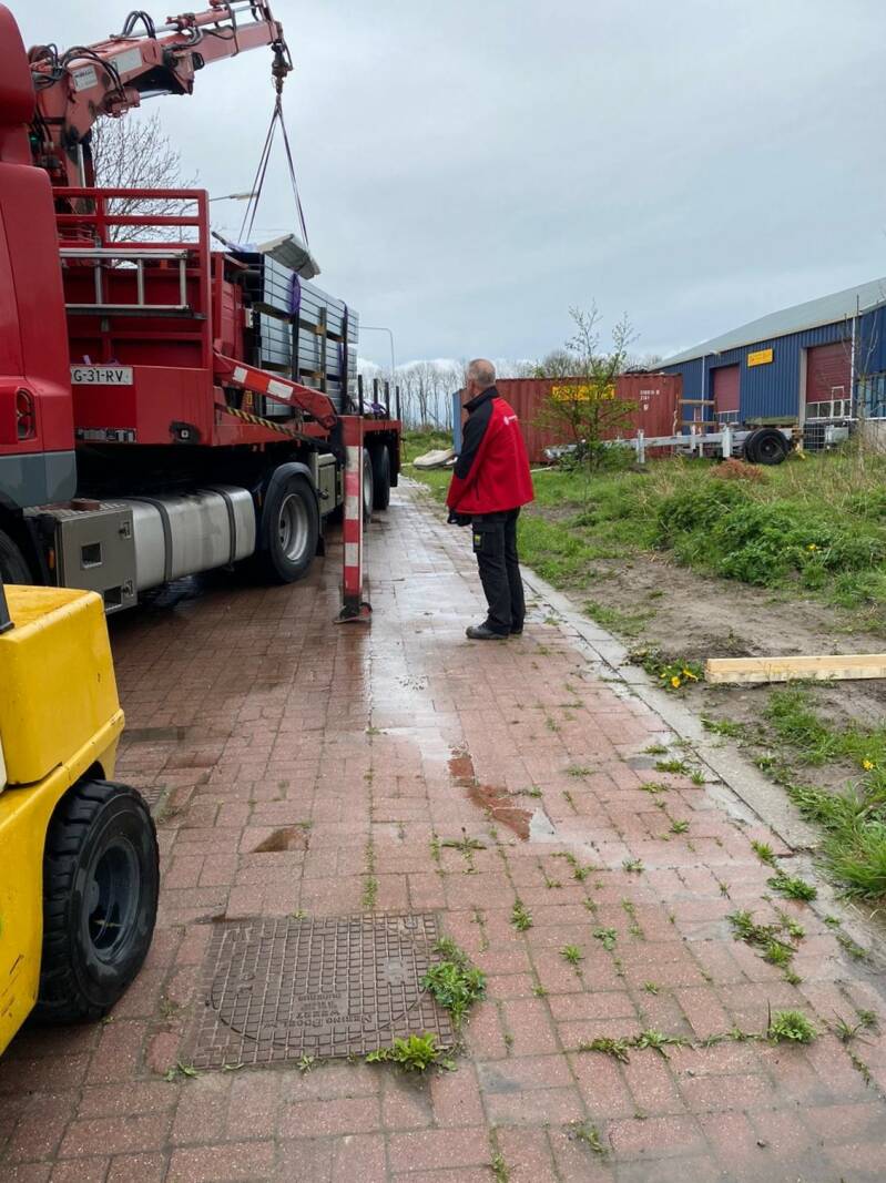 10/05/2021: Het plaatmateriaal voor de gevels en het dak is geleverd !
